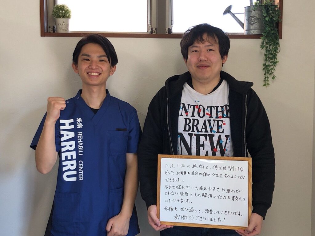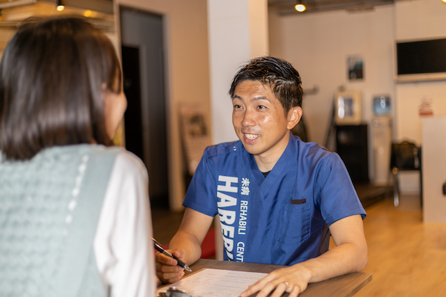 2回の体験を通じて、症状がどのように変化したのか、良くなったのか悪くなったのか、しっかりと再度評価することで、その方に適した施術法や自主トレーニングなどを考案させていただいております。