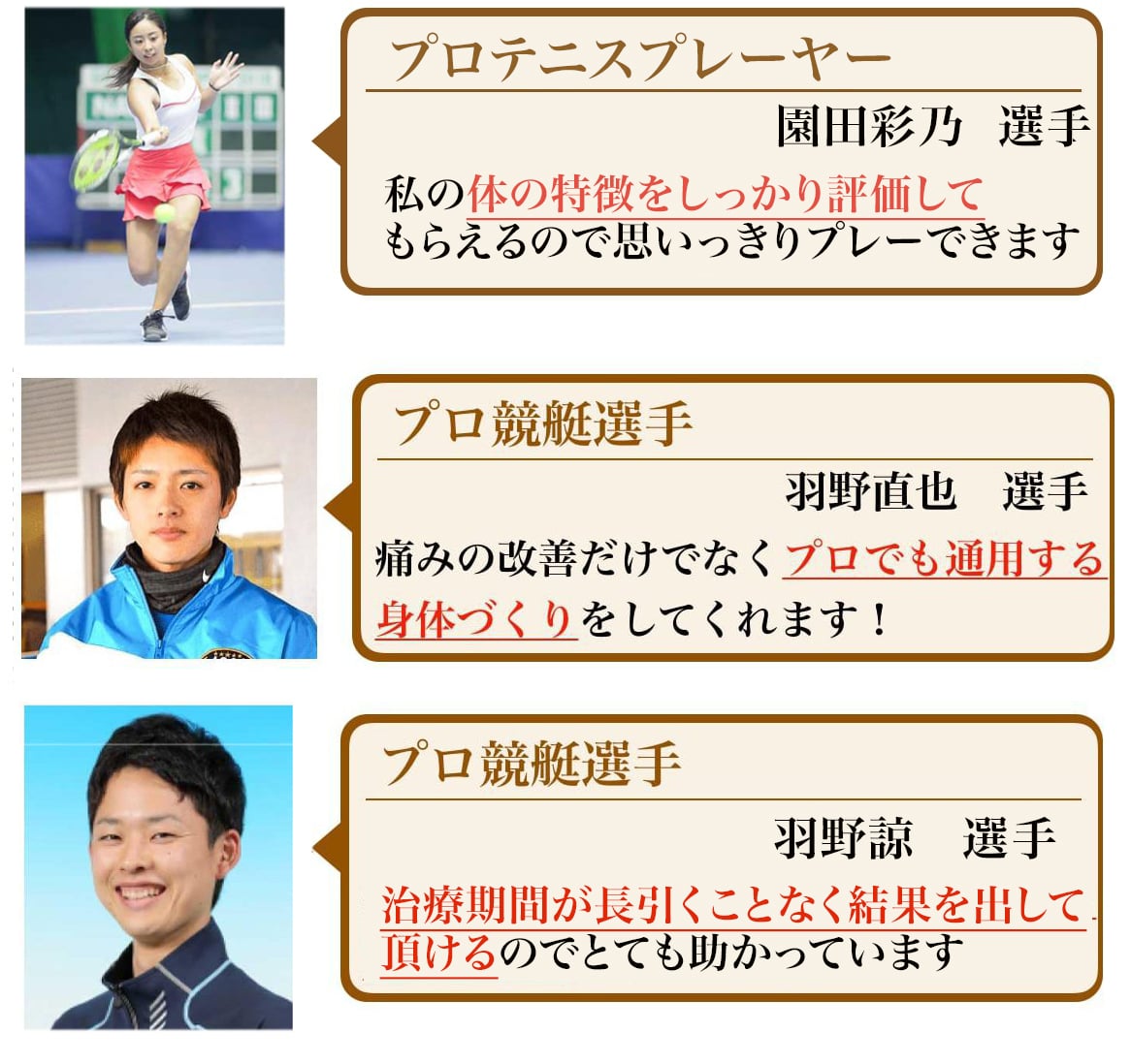 スポーツ時の腰、膝、首の痛みがなくなりました!!