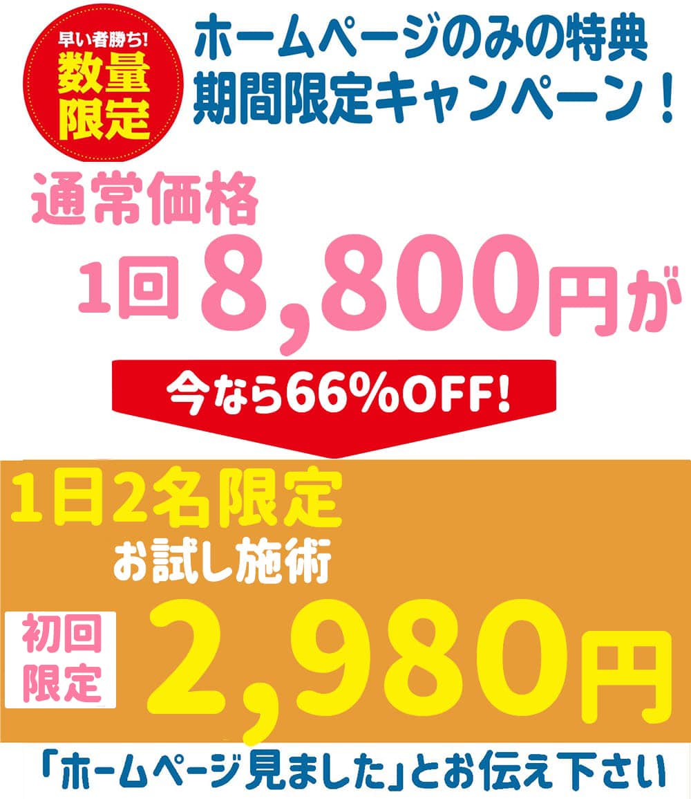 最高の質の施術を、回数と期間を決めてしっかりと根本から改善させる。